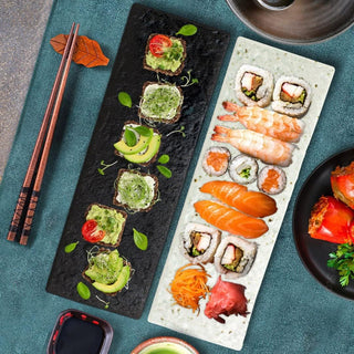 TIKUSAN Serving Platters, Sushi Plate Set of 2, Rectangle Plates Made in Japan, Ceramic Plates for Dinner Party Restaurant for Appetizer, Meat, Dessert(White)